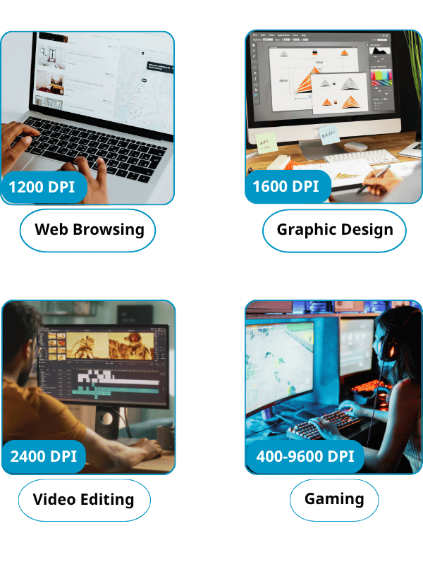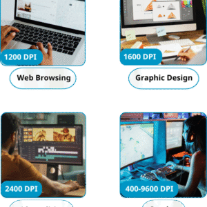 DPI Range Adjustable DPI: 800 to 9600 – Gaming level precision